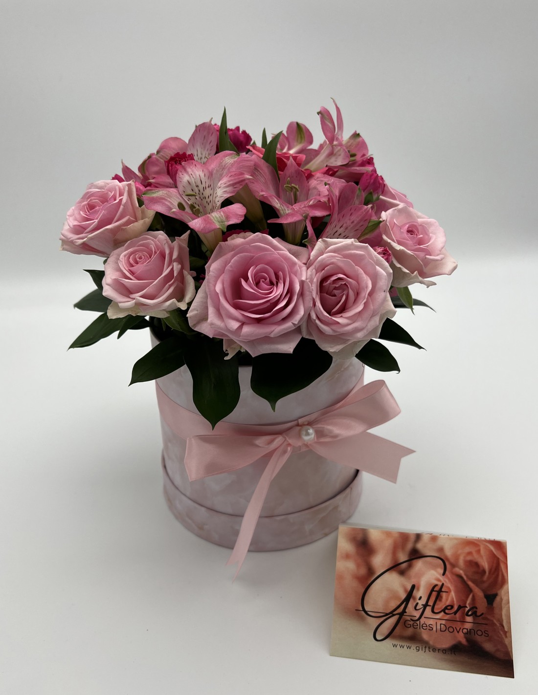 Gėlių dėžutės puokštė – tai stilinga ir unikali gėlių kompozicija, kuri pateikiama dėžutėje. Šis modernus klasikinės puokštės posūkis bet kokiai progai prideda netikėtumo ir elegancijos. Gėlės yra kruopščiai išdėstytos dėžutėje, sukuriant gražią ir vientisą ekspoziciją. Su gėlių dėžutės puokšte galite padovanoti apgalvotą ir prasmingą dovaną, kuri tikrai praskaidrins kažkieno dieną. Nesvarbu, ar tai gimtadienis, jubiliejus ar tiesiog pasakyti „Aš tave myliu“, gėlių dėžutės puokštė yra puikus pasirinkimas.