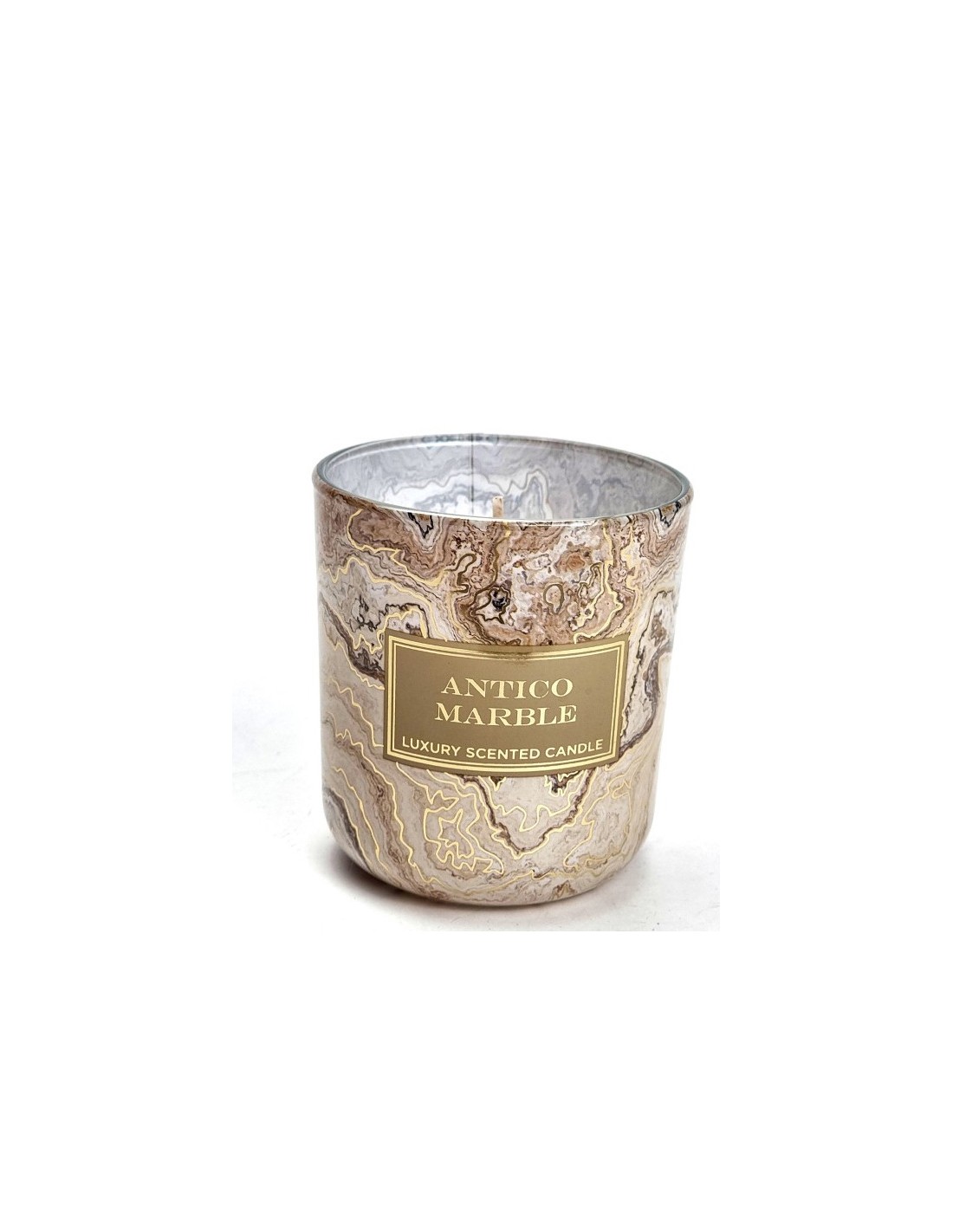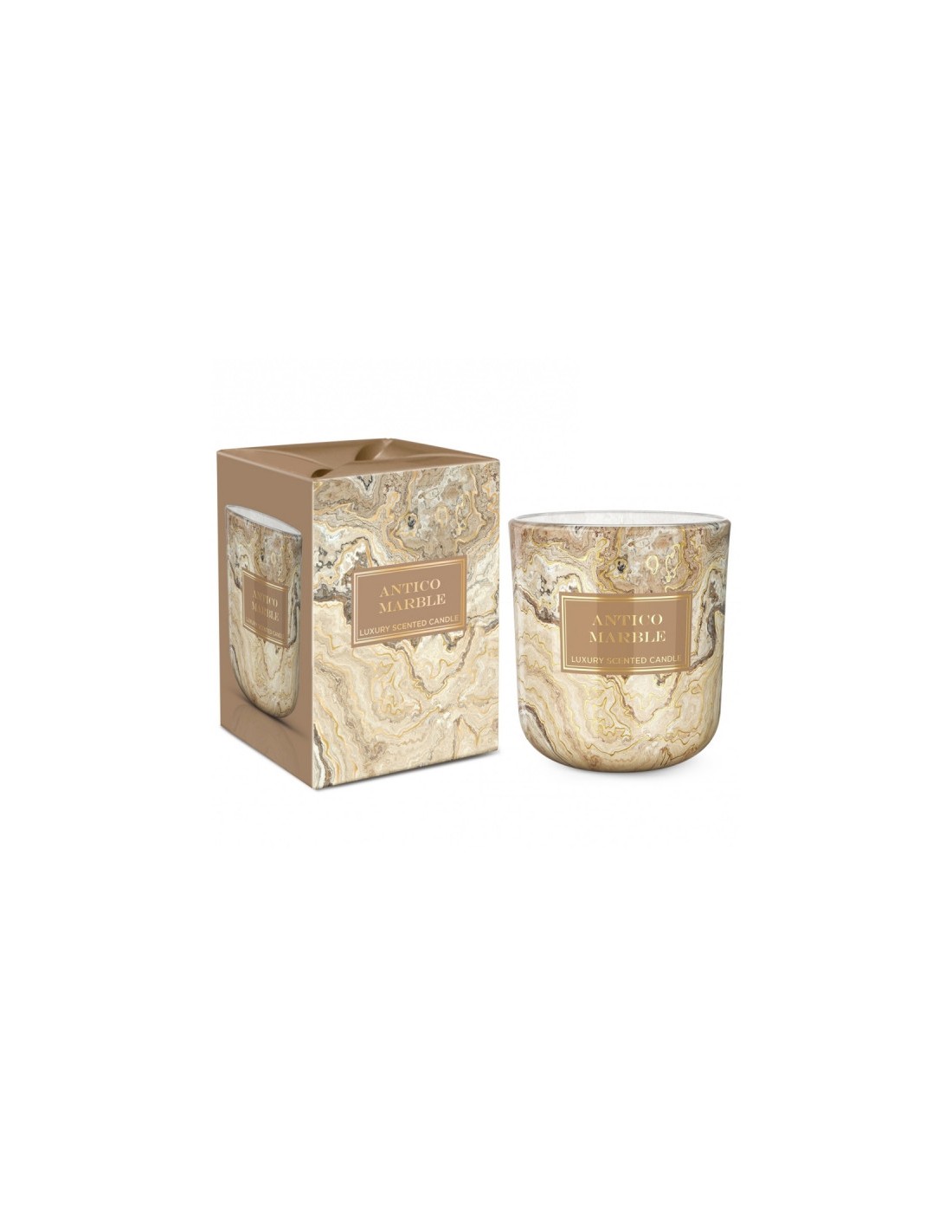 ANTICO MARBLE - aromatinė žvakė. Pelargonijos, jazminai, pačiuliai, mediena, vanilės esencija ir tonka pupelės.